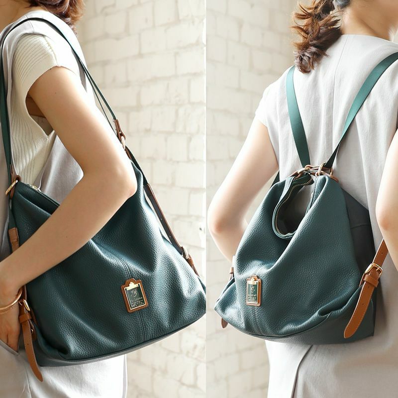 【HerSchedule】イタリア製撥水レザー&撥水ナイロンの軽量リュック0秒でトートにもリュックにもなる Work&Trip ワークアンドトリップ マイベストサイズ ブリティッシュグリーン(ハースケジュール)