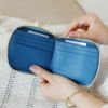 【HerSchedule】チェレットbillfold(二つ折りウォレット)シリーズ 「天空の美しい青色」をイメージした特注レザー Heavenly Blue(ヘブンリーブルー) 二つ折りラウンドファスナーウォレット (ハースケジュール)