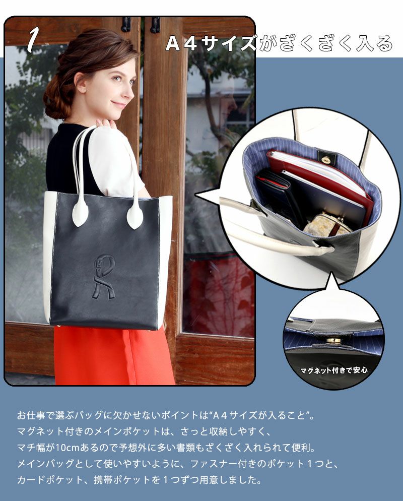 他の画像を見る A4サイズ対応 【ロベルタ】『steady.』掲載*上質レザーにあえて描いた贅沢なユーモアアートのトートバッグ Trompe collection corale(トロンプ コレクション コラーレ) A4バッグ 販売価格 ¥ 49,500 税込 お気に入りに登録する