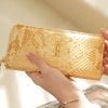 ダイヤモンドパイソン(パール仕上げ) 【 パイソンで知っていただきたいこと 】 天然ものなので、少しずつ色・ツヤ・風合いが異なりひとつひとつに個体差がございます。 また シミになりやすいため、水分の多いところでの使用はお気をつけください。 内装 : レーヨン、キッド(子ヤギ) |