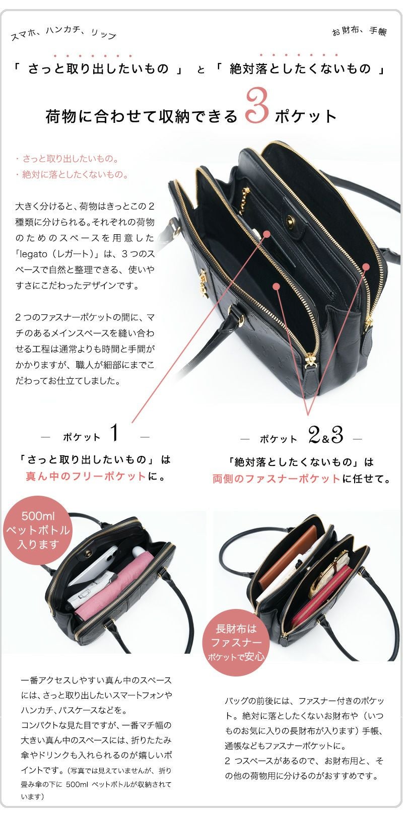 他の画像を見る 【ロベルタ】ハンドバッグの品格と整理上手な3ポケット。ロベルタが新たに提案するオケージョンシーンに持ちたい「ライトエレガント・バッグ」 legato(レガート) ギフト プレゼント(ラッピング無料) 販売価格 ¥ 42,900 税込 在庫切れ お気に入りに登録する