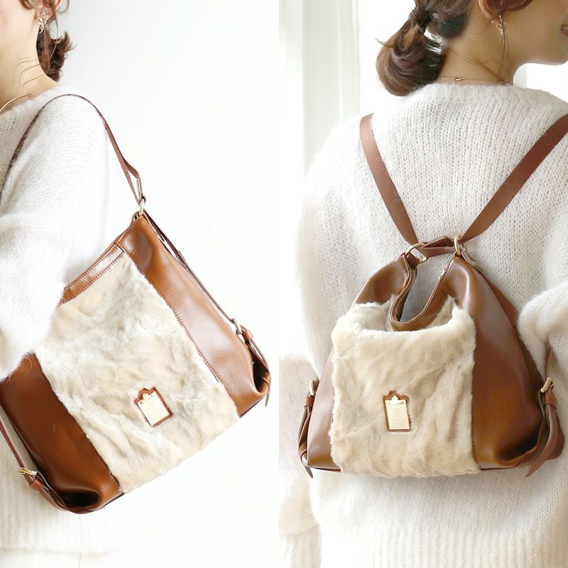 【HerSchedule】本物以上に滑らかで豊かなフェイクファーバッグ 軽量リュック0秒でトートにもリュックにもなる Work&Trip ワークアンドトリップ マイベストサイズ リュクスファー(ハースケジュール)