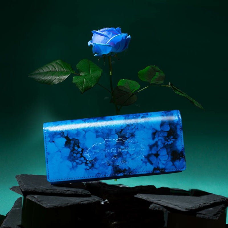 【FRUTTI】花言葉は“夢叶う”。 ALBA Alice -Blue Rose-(アルバアリス ブルーローズ)Mink embossed長財布