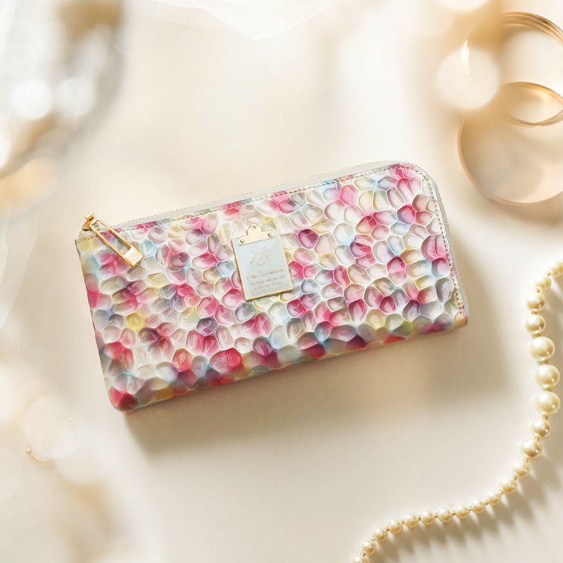 【HerSchedule】チェレット誕生記念スペシャルレザー「メモリアルパールエナメル」見る人みんなが自然と笑顔になるエナメル革「Memorial Balloon(メモリアルバルーン)」 薄手のロングウォレット 長財布 エナメル革(ハースケジュール)