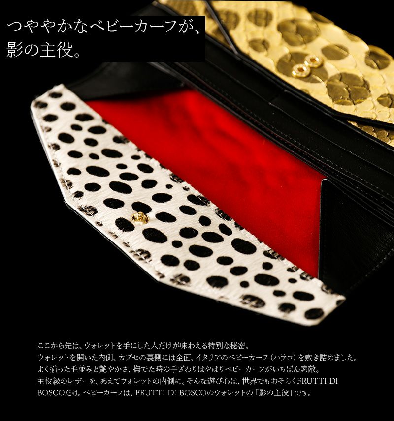 他の画像を見る erutuoc限定商品 【FRUTTI】エルトゥーク限定 Salu Python "Elena" (サルーパイソン エレナ) 長財布 レディース ギャルソン財布 パイソン ダルメシアン ゴールド 財布 20代 30代 40代 販売価格 ¥ 92,400 税込 在庫切れ お気に入りに登録する