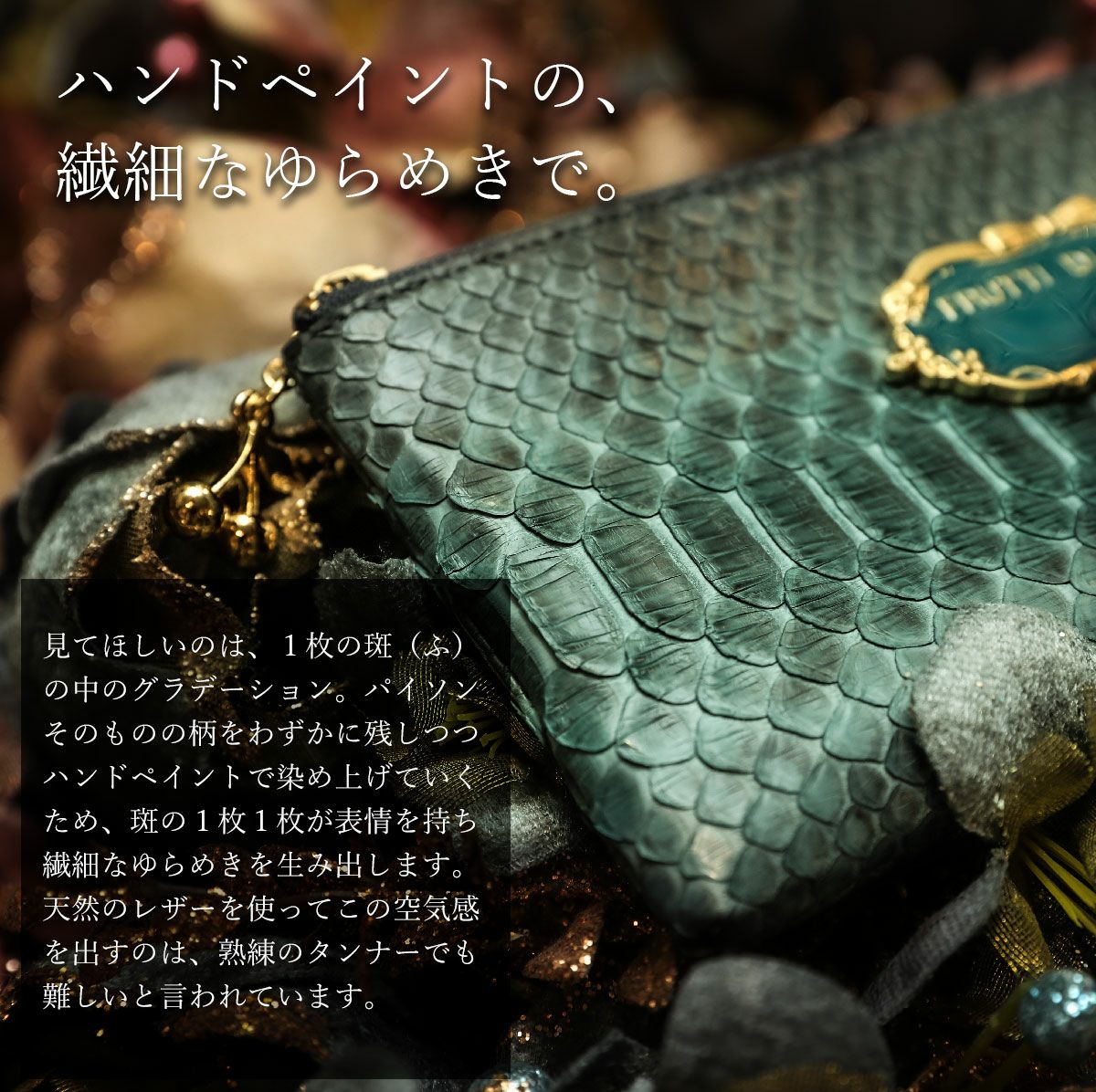 他の画像を見る erutuoc限定商品 【FRUTTI】長財布 パイソン レディース Cara Python "Esmeralda"(カーラパイソン エスメラルダ) 販売価格 ¥ 60,500 税込 在庫切れ お気に入りに登録する
