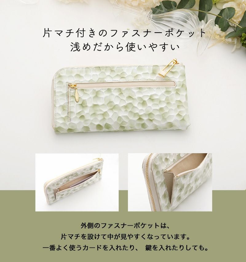 他の画像を見る 【HerSchedule】くすんだグリーン色のブーケをイメージした特別なエナメルレザー Green Bouquet(グリーンブーケ) チェレット 長財布 薄手のロングウォレット (ハースケジュール) 販売価格 ¥ 31,900 税込 在庫切れ お気に入りに登録する