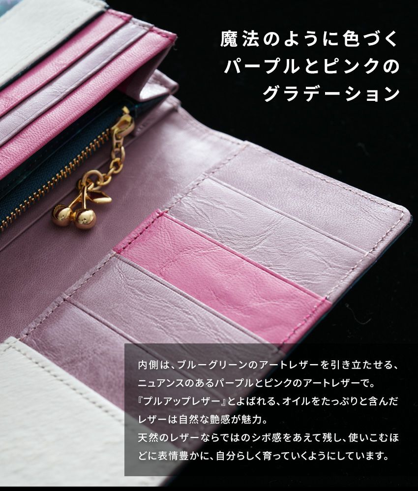 他の画像を見る 【FRUTTI】不思議の森の、新しい命が芽生える瞬間を描いた、みずみずしいレザーで仕立てる二つ折りウォレット Elmo Alice(エルモアリス) -Brandnew World-(ブランニューワールド) 販売価格 ¥ 39,600 税込 お気に入りに登録する