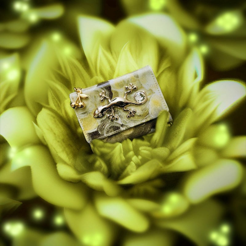 クリスタルサラマンダーが輝く、幻想的なアートレザーのミニ財布